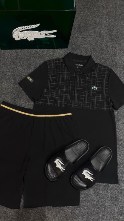 Geometric Color-block Polo Top and Casual Pants Set