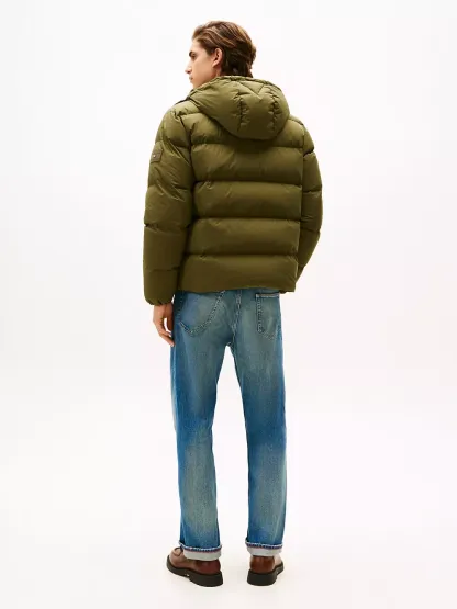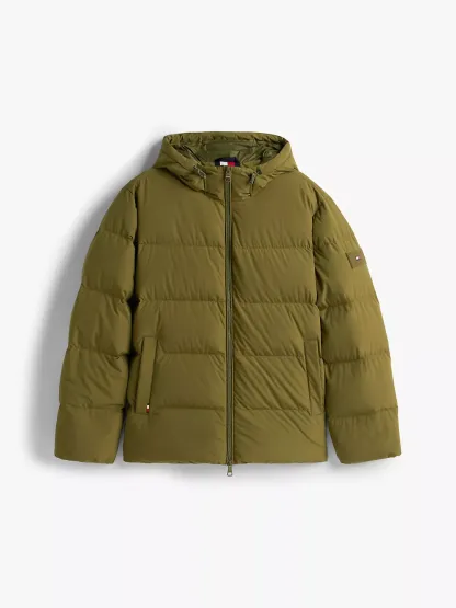Tommy Hilfiger men's jacket. Designed to brave the elements, this hooded puffer jacket features a smooth, water-repellent shell and warm down insulation.