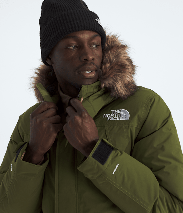 The McMurdo Parka, our longest men's coat, has a long list of must-have features. It is windproof, waterproof, breathable, and insulated with 600-fill recycled down.