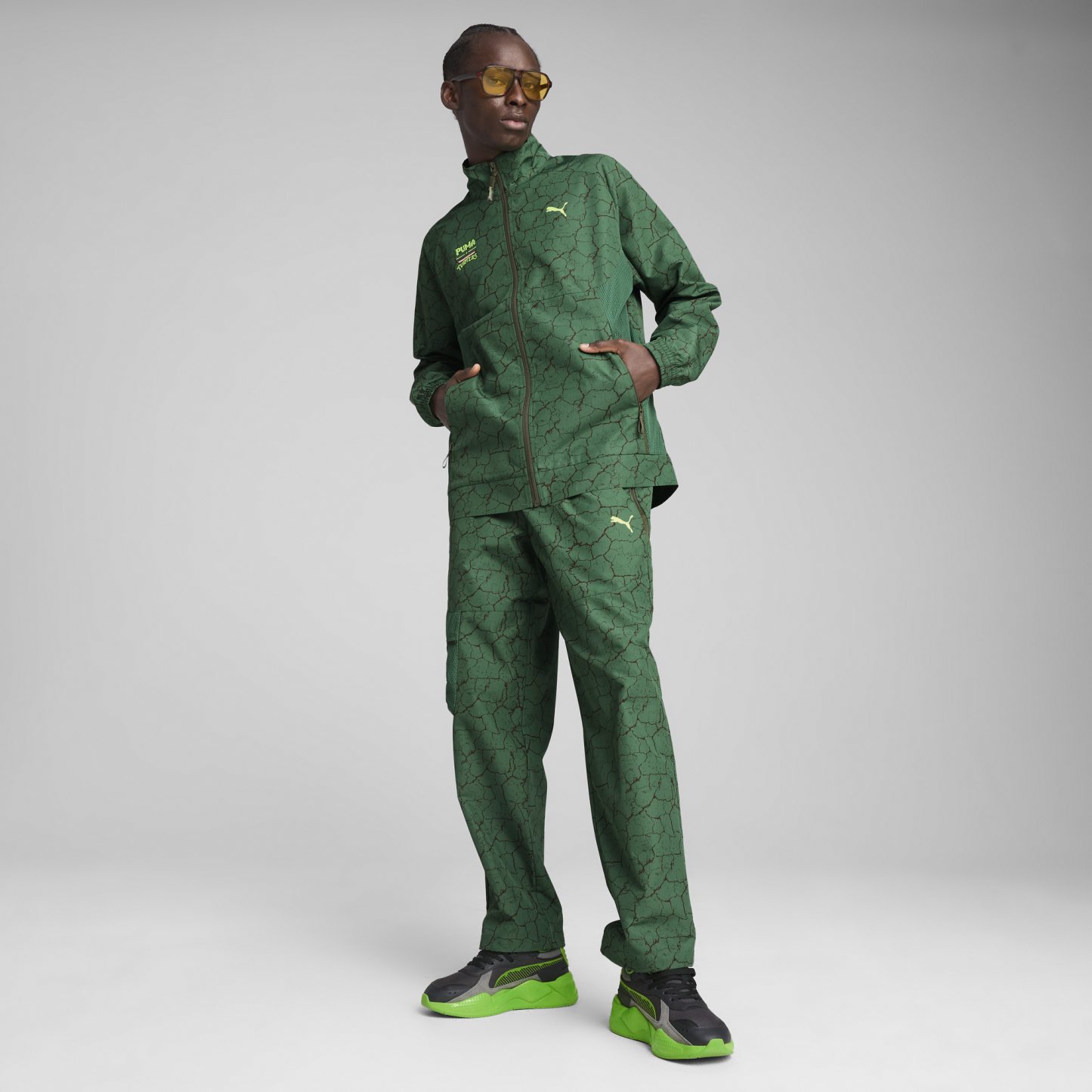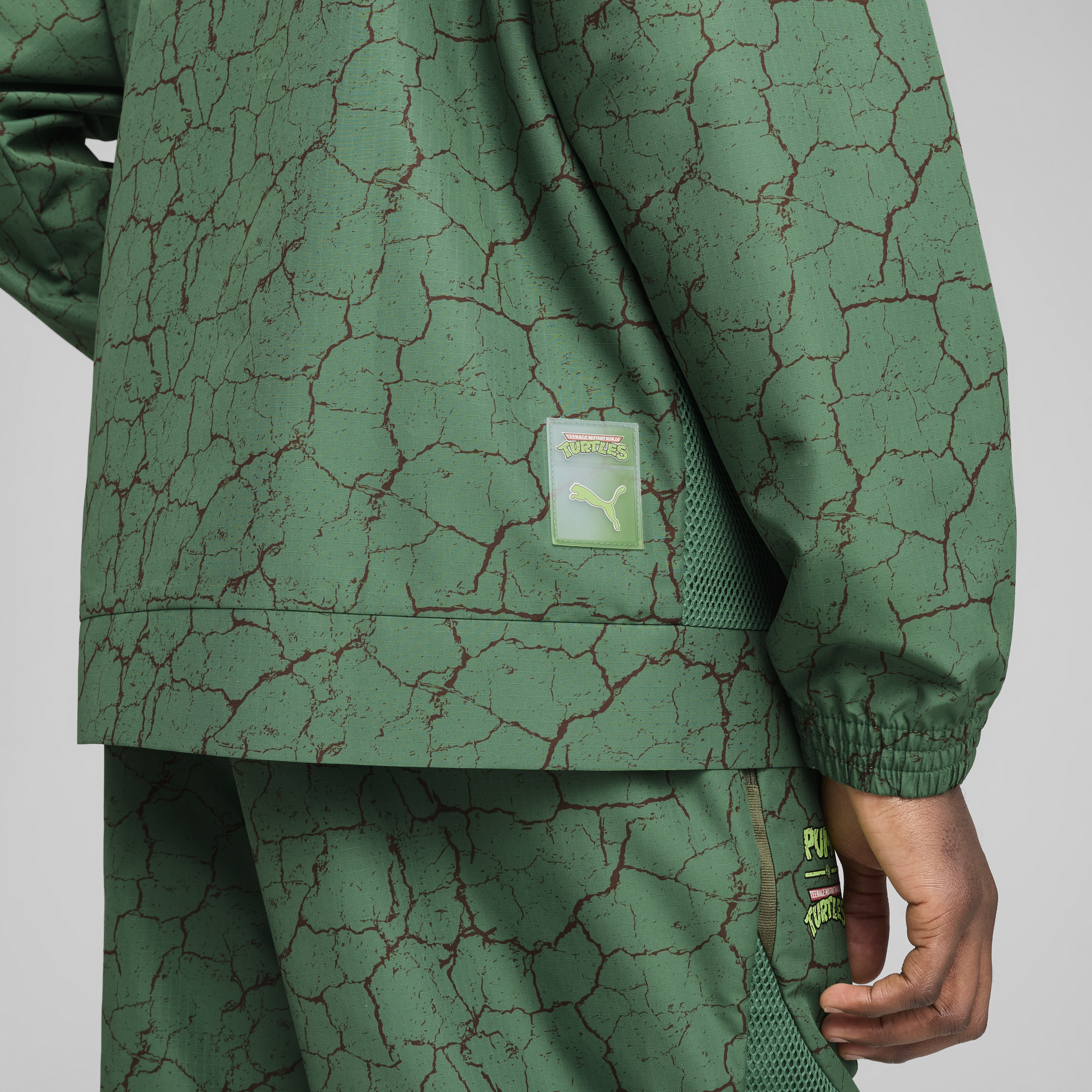 Deep from within the New York City sewers, its everyone's favorite pizza-loving, skateboarding, crime-fighting team: the Teenage Mutant Ninja Turtles. This track jacket boasts a Turtle shell-inspired print, secure zip pockets, and a stand-up collar with a custom zipper puller. Embrace your inner hero and make every move legendary with PUMA.