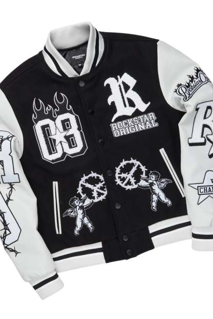 Rune Black Varsity Jacket & Shake Stacked Flare Jean Bundle