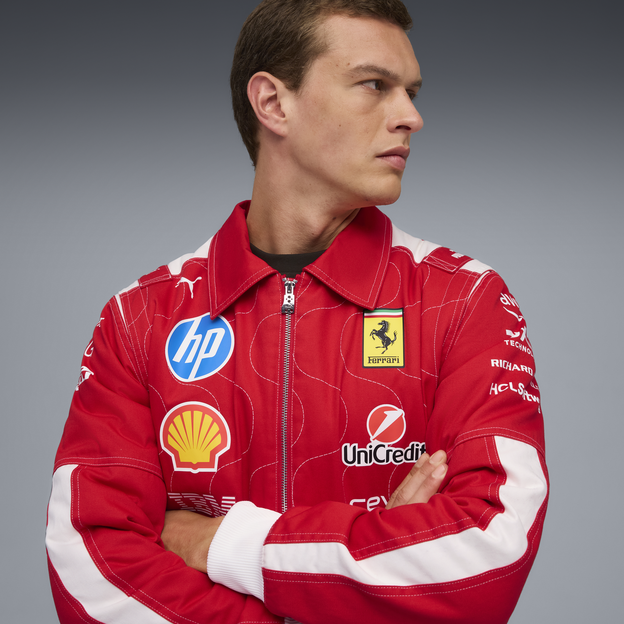 Lauda’s first title? Monza, 1975. 50 years on, Hamilton and Leclerc take on Scuderia Ferrari HP’s home track as teammates for the very first time. To mark the moment, this limited-edition drop draws inspiration from Lauda’s race suits, complete with vintage logos, throwback lettering, and a few retro nods. Think jackets, tees, and caps for fans who know it’s all about those firsts, every time the lights go out.