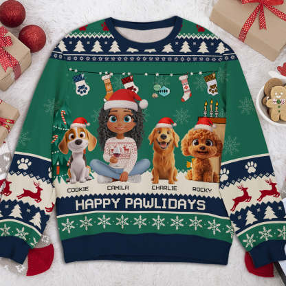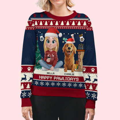 Snowy Pawlidays Cartoon - Personalized Custom All-Over-Print Sweatshirt