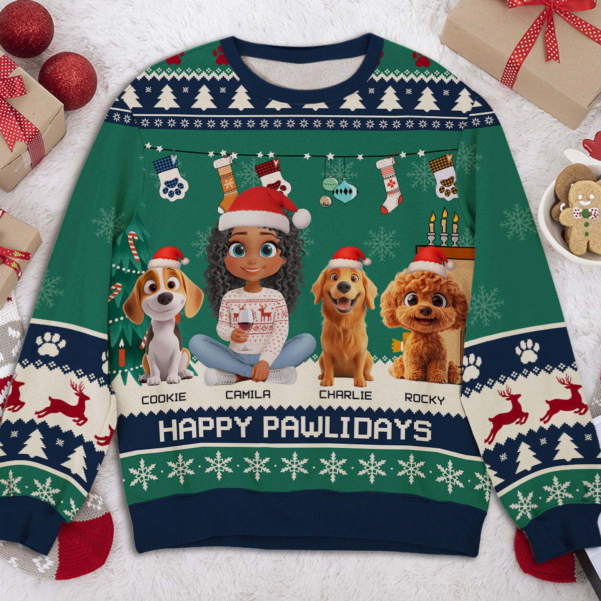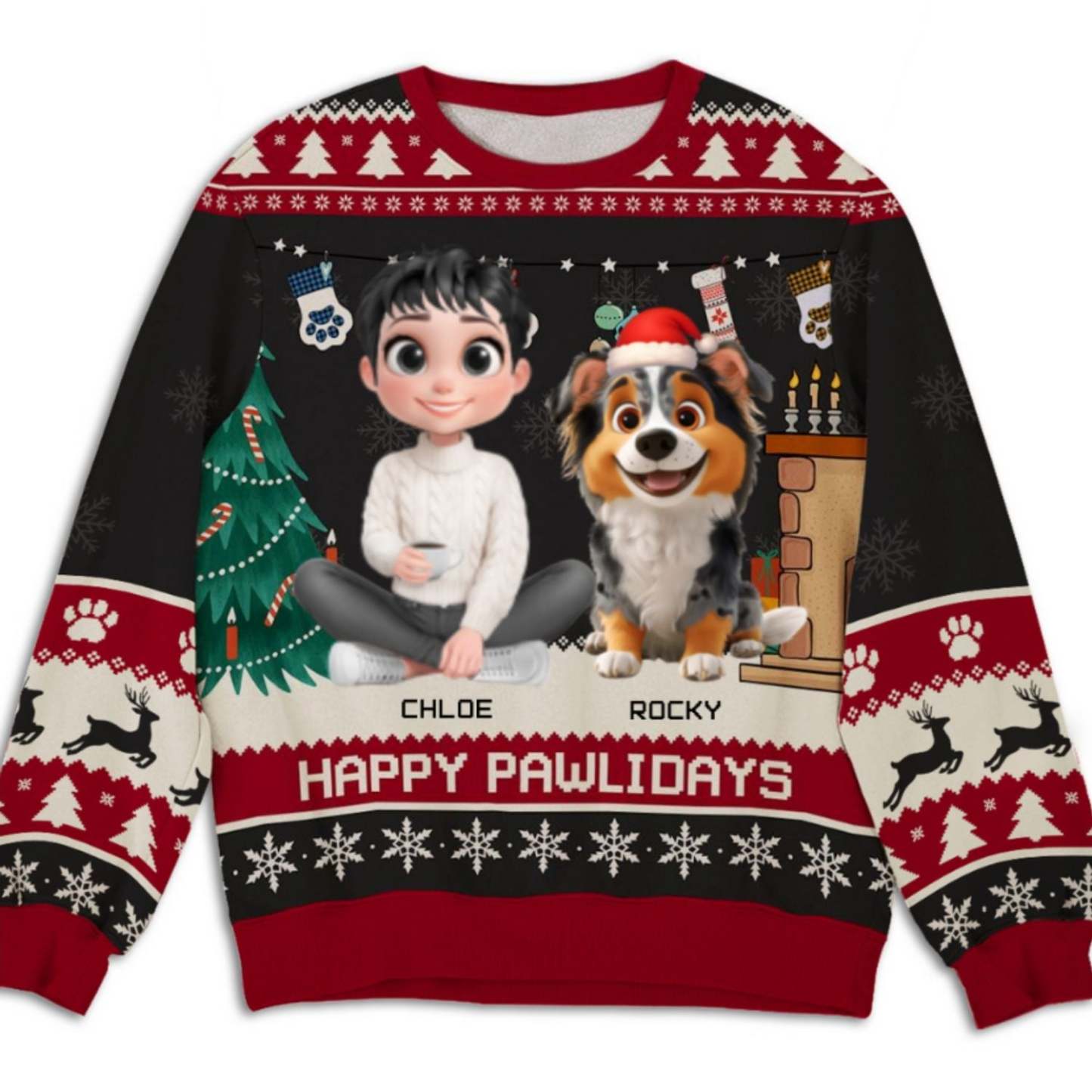 Whether you're finding a unique gift for dog lovers or want to break your Holiday season with a trendy outfit, this cute all-over-print sweatshirt is an ideal choice.
