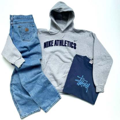 Each box contains a curated assortment of various vintage pieces from the 80’s, 90’s and 00’s. Sportswear, workwear, designer and loads more. Just pick your sizes and we’ll do the rest.